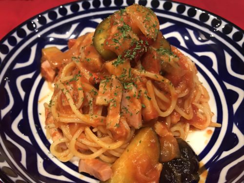 6月より、セットメニューが夏メニューに変わりました! ナスとベーコンのアラビアータです! 新メニューもお願い致します。
