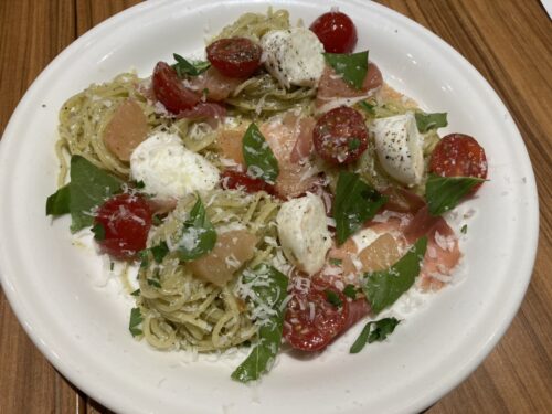 『”パスタ・カプレーゼ” ボッコンチーニとチェリートマトの冷製ジェノベーゼ 〜柑橘のアクセント〜』季節のおすすめメニューです!ご来店お待ちしております!