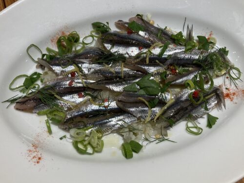 夏のおすすめメニューより、自家製塩漬けイワシ! マリネした玉ねぎとハラペーニョをあわせ、暑い夏にピッタリの旨辛前菜!ぜひご賞味下さい!