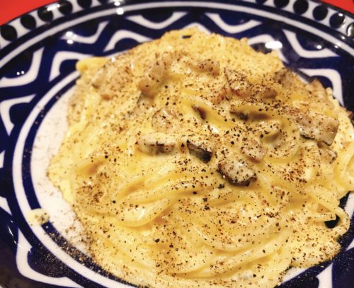 明日の週替わりパスタはカルボナーラです! パンチェッタ(豚バラの塩漬け)を使ったカルボナーラになります。 皆様のご来店お待ちしております。
