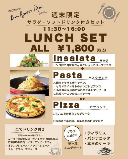 週末限定のランチセットが新しくなりましたのでご紹介です! 春の訪れを感じる食材をふんだんに使用しております🌸 ぜひお試しください♪