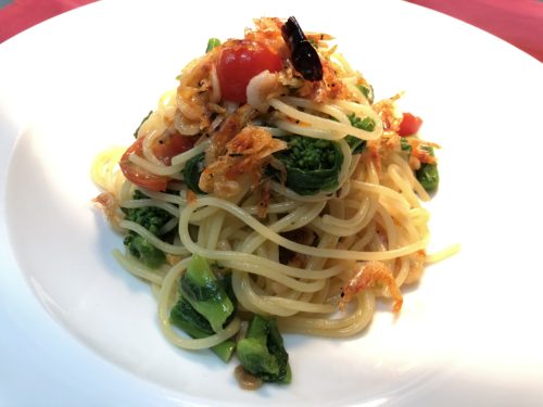 まだまだ寒い日が続きますがボナパパは一足早く春模様!? 桜海老と菜の花のペペロンチーノ★