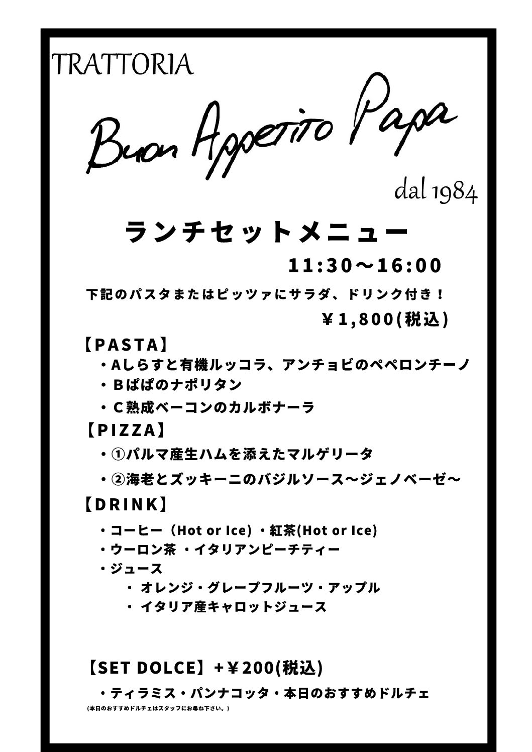 土日、祝日限定のランチセットやっています!!今月はパパのナポリタンがオススメ☆
