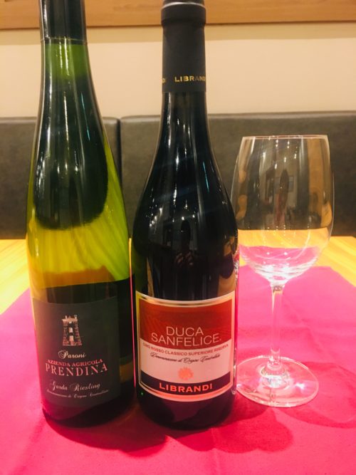 今月のおすすめワイン!白 ラ・プレンディーナ”リースリング”赤 チロロッソ・リゼルバ★暑い日には爽やかな酸味のリースリングがおすすめです!!グラス1杯から提供致します。