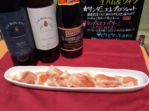 北イタリア、フリウリ-ヴェネチア・ジューリア州特産の極上生ハムとそれに合うワインをご用意してます!!是非ペアリングをお楽しみ下さい☆