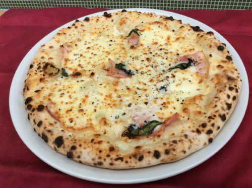 燻製モッツァレラとベーコンのピッツァ★黒胡椒がアクセントですので是非ビールのお供に!!