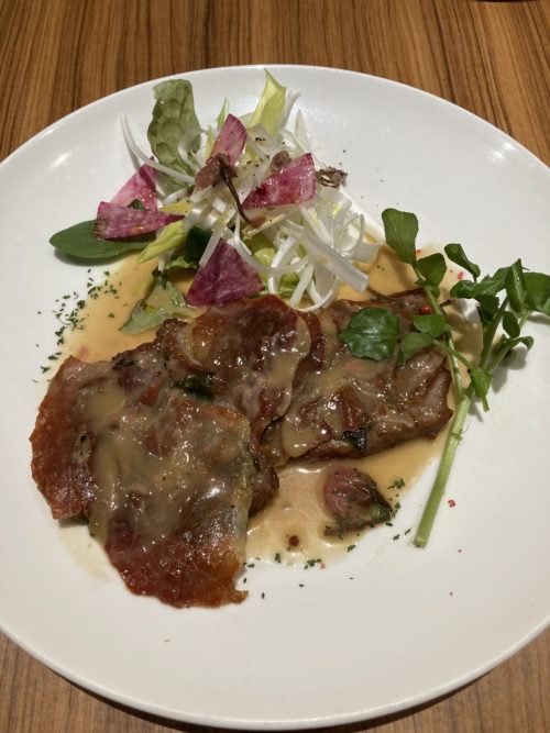 春のおすすめメニューから🌸桜薫る仔牛のサルティンボッカ~春仕立て~ あっさりした仔牛肉に生ハムの塩気と桜の薫りがアクセント!!ご来店お待ちしております。