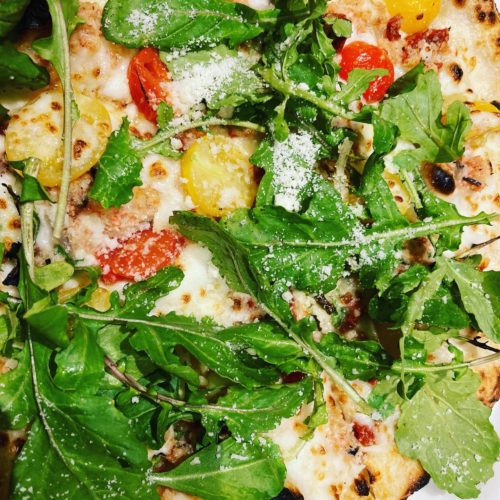 冬メニューより★紅ズワイ蟹とルーコラのピッツァ!ルーコラの程よい苦みがアクセントです。ご来店お待ちしております。
