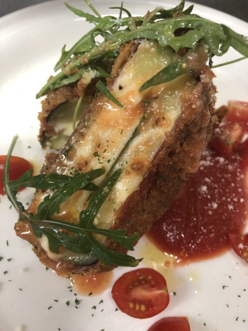 自家農園の賀茂茄子料理第2弾!”賀茂茄子とモッツァレラの生ハム巻きカツレツ” 数量限定ですので、お早目のご来店お待ちしております★