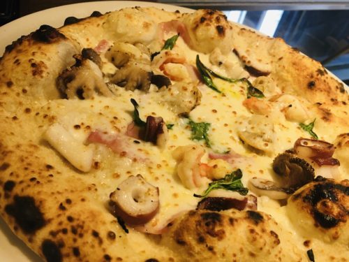 本日のランチピッツァ!!『ベーコンとシーフードのビアンコピッツァ』 具だくさんの食べ応えのあるピッツァです!! ご来店お待ちしております!!