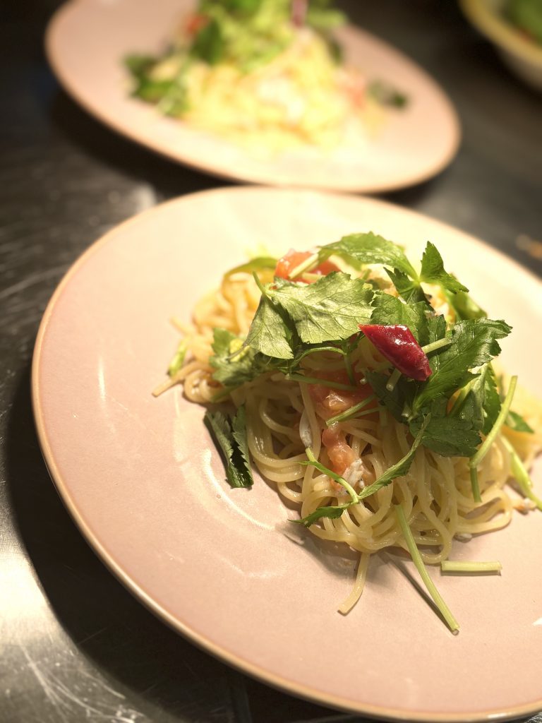 日替わりパスタ しらすとトマト、三つ葉のペペロンチーノ